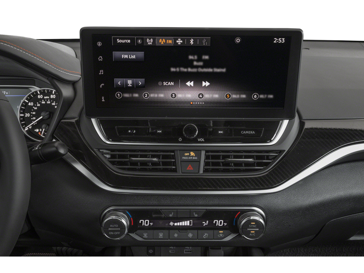 - Radio: AM/FM Audio System -inc: RDS, MP3 and aux-in, 6 speakers, NissanConnect 8" color display w/multi-touch control, Bluetooth® hands-free phone system, streaming audio via Bluetooth®, hands-free text messaging assistant, 2 front illuminated USB ports (1 type-A and 1 type-C) for compatible devices, Apple CarPlay, Android Auto, SiriusXM Radio, Siri Eyes Free, Google Assistant voice recognition and 2 rear illuminated USB ports (1 type-A and 1 type-C)